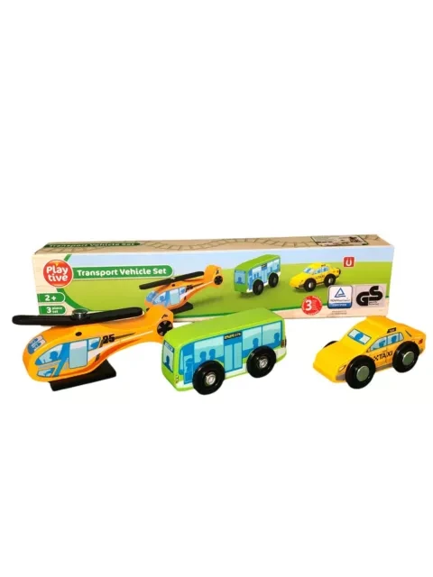 Подаруйте малюку незабутні години гри з дерев'яними машинками Playtive! У комплекті: гелікоптер,автобус і таксі. Виготовлені з натурального європейського бука, машинки створені для розвитку дрібної моторики, уяви та координації. Всі транспортні засоби обладнані магнітними з'єднувачами для зручного поєднання з іншими елементами дитячої залізниці.